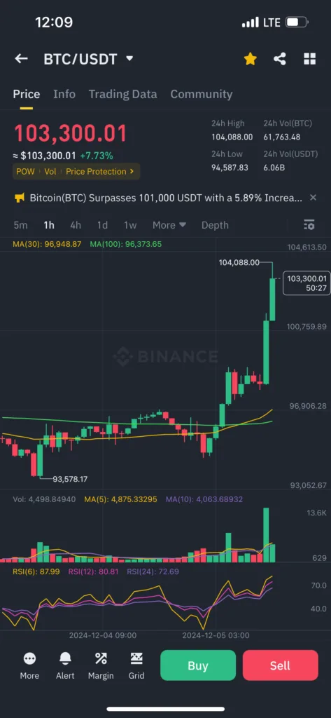 2024년 12월 5일 비트코인이 드디어 100k에 도달 했습니다. 와우~